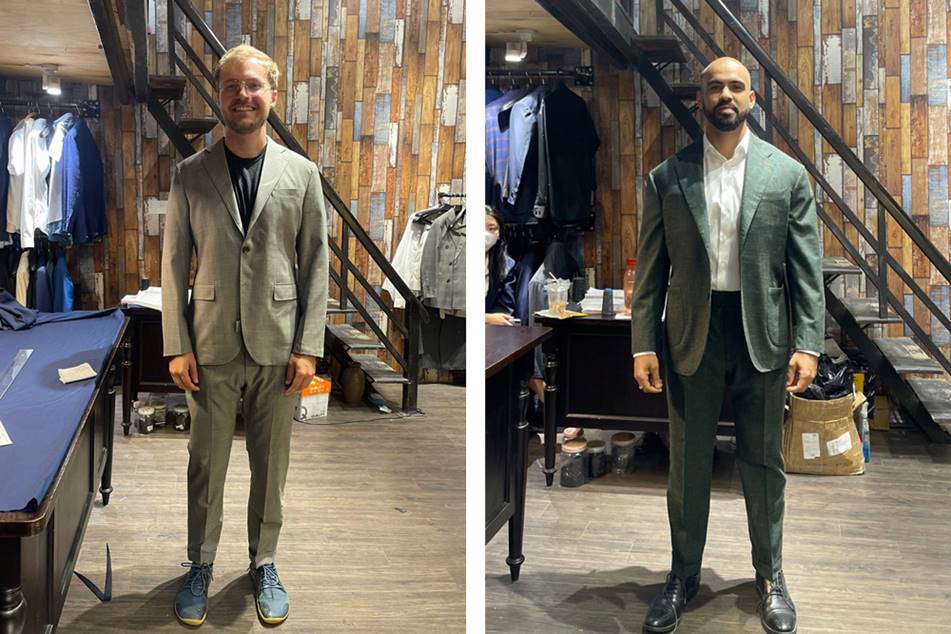 - Schnelle BearbeitungszeitDie Anfertigung eines Anzugs dauert in der Regel 5–7 Tage, schnelle Änderungen können oft innerhalb Ihres Reiseplans vorgenommen werden. Bei längeren Aufenthalten oder Stammkunden werden die Maße gespeichert, um Nachbestellungen sowohl im Geschäft als auch online zu vereinfachen.
